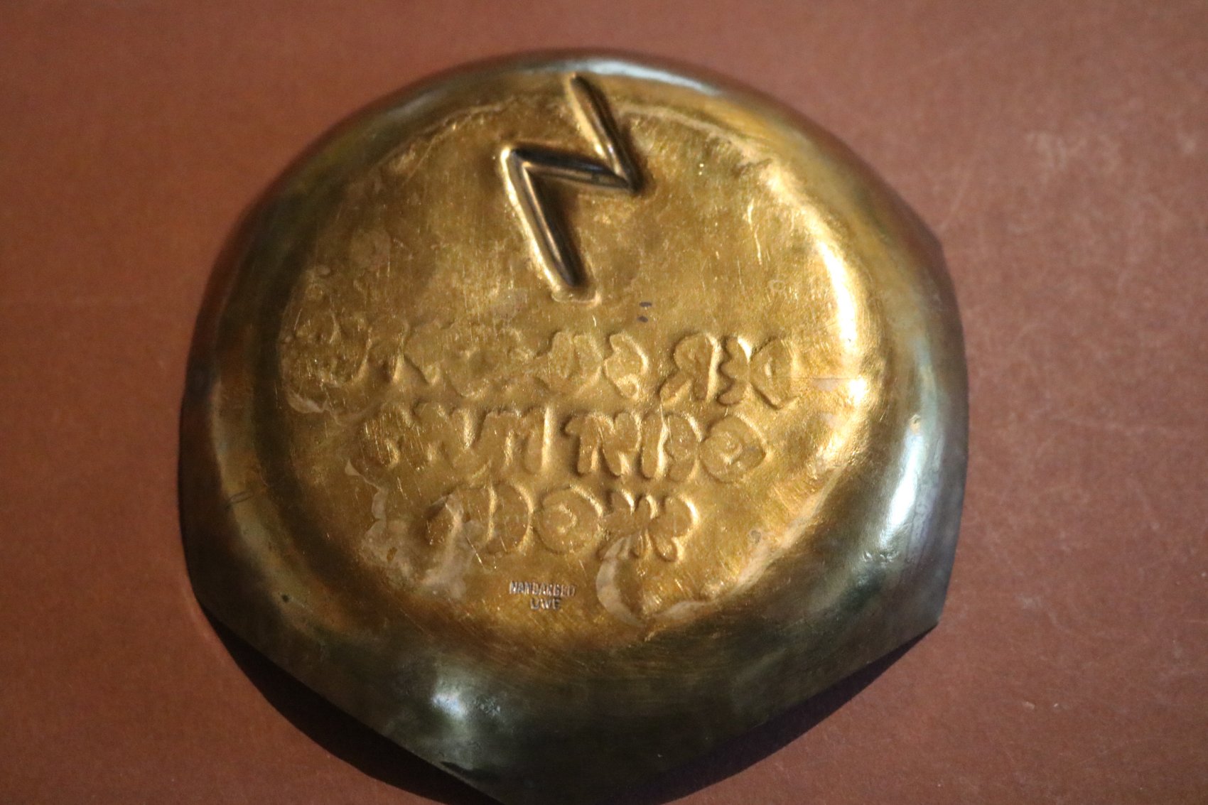 Mobile Preview: Einzelstück ?  selbstgemachte alte Messingschale mit HJ-Spruch und Rune
