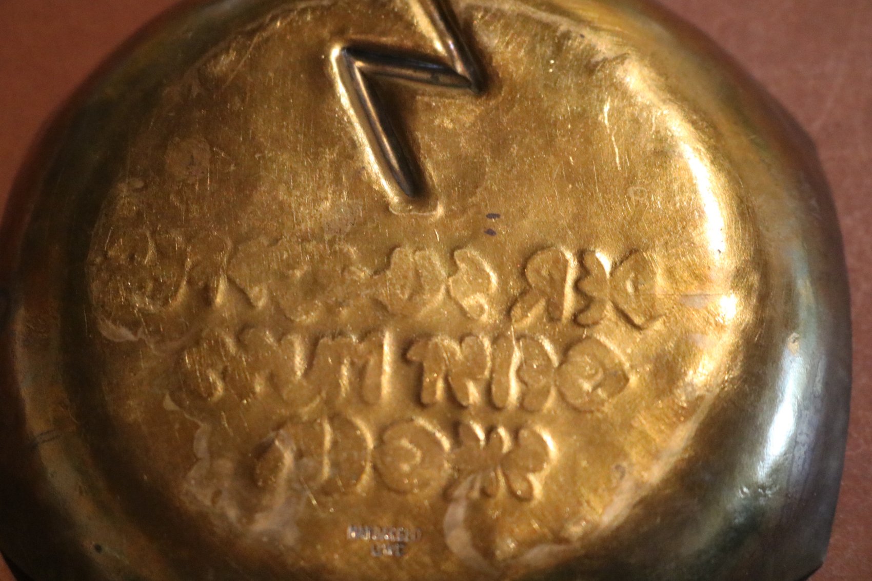 Preview: Einzelstück ?  selbstgemachte alte Messingschale mit HJ-Spruch und Rune