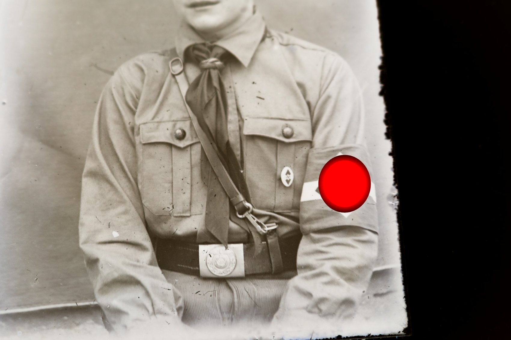Mobile Preview: altes Glasnegativ - Hitlerjunge, Pimpf , mit Schirmmütze und Abzeichen