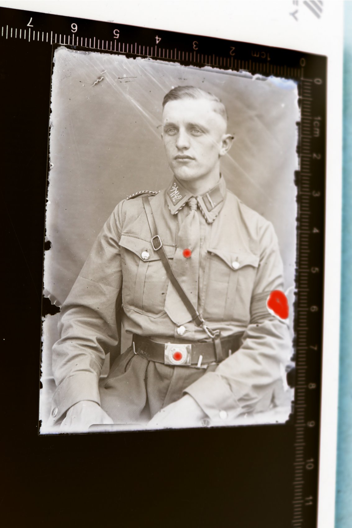 altes Glasnegativ - junger SA-Mann - Abteilung 3/M42