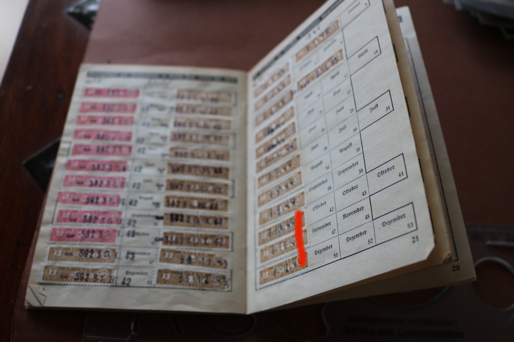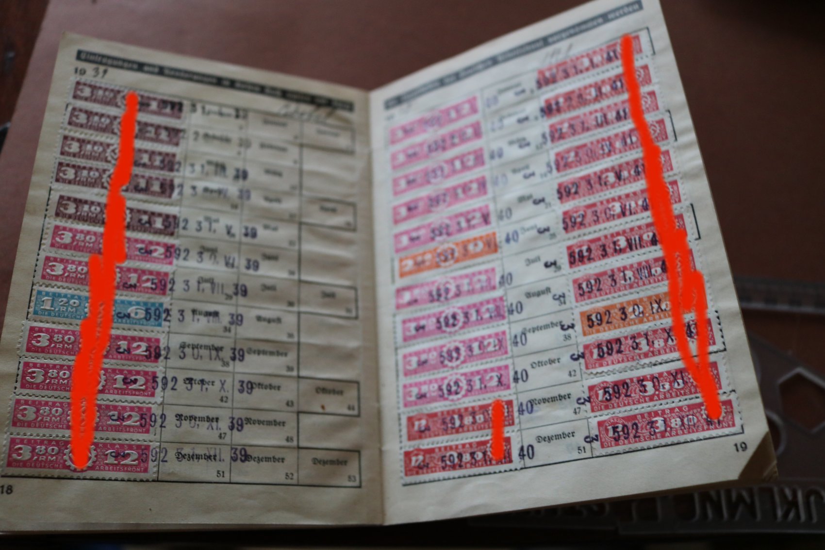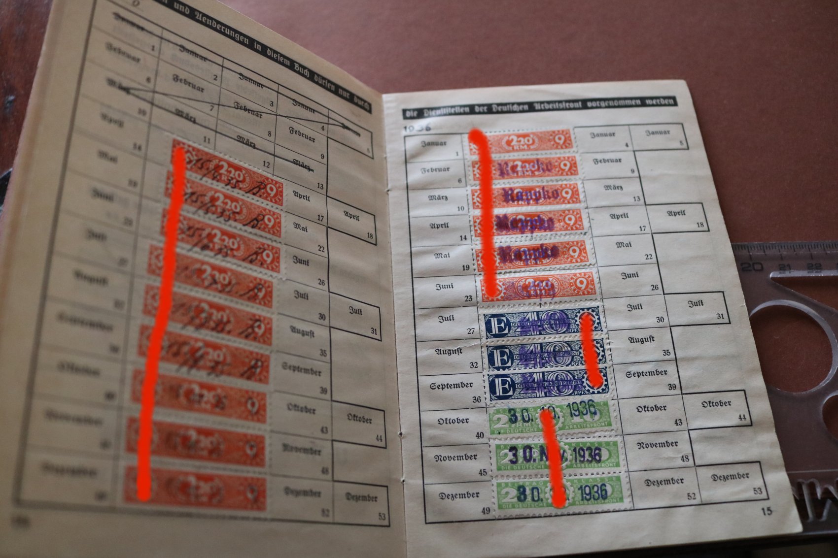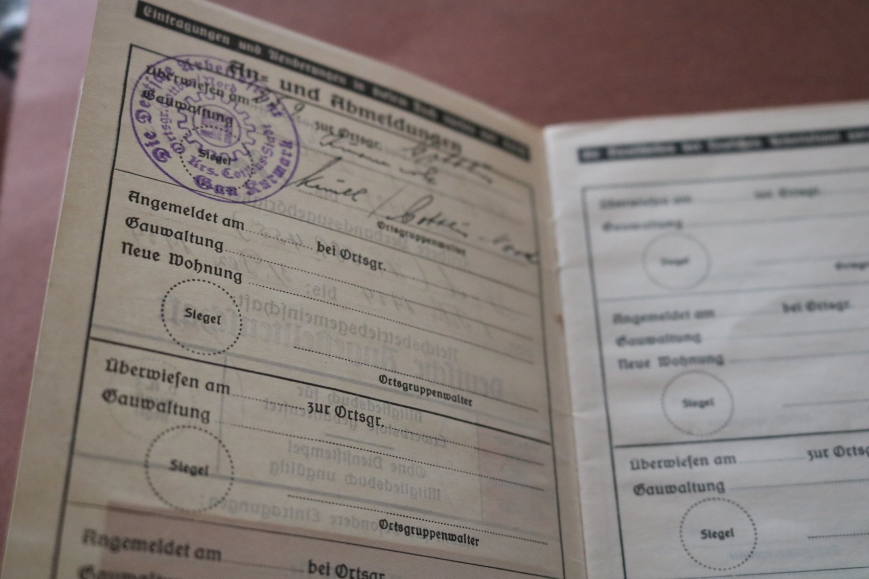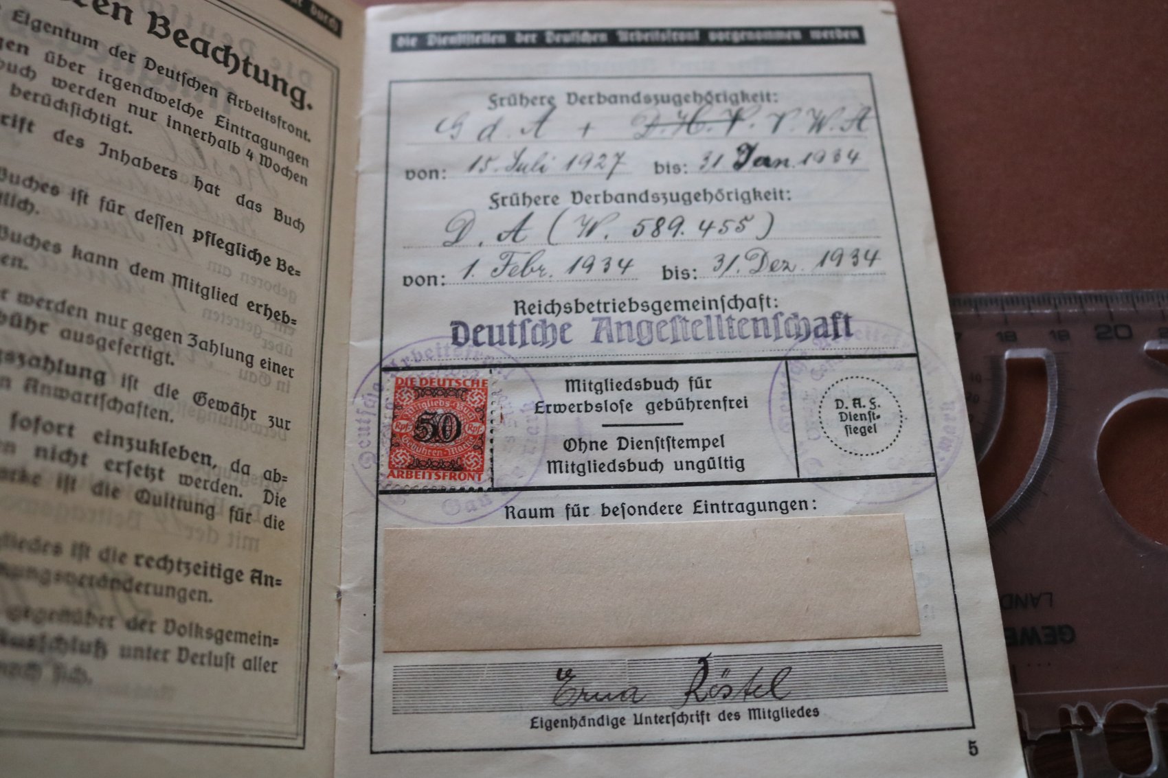 Mitgliedsbuch der Deutschen Arbeitsfront DAF einer Frau aus Cottbus - defekt