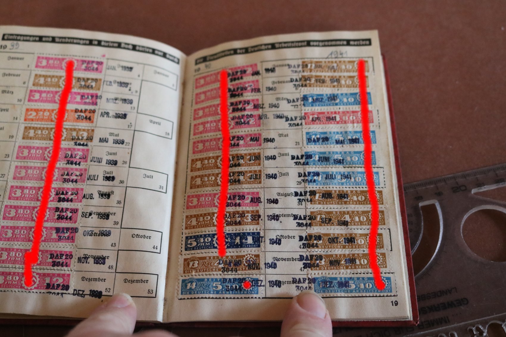 Mobile Preview: Mitgliedsbuch der Deutschen Arbeitsfront DAF eines Mannes aus Pfalz-Saar