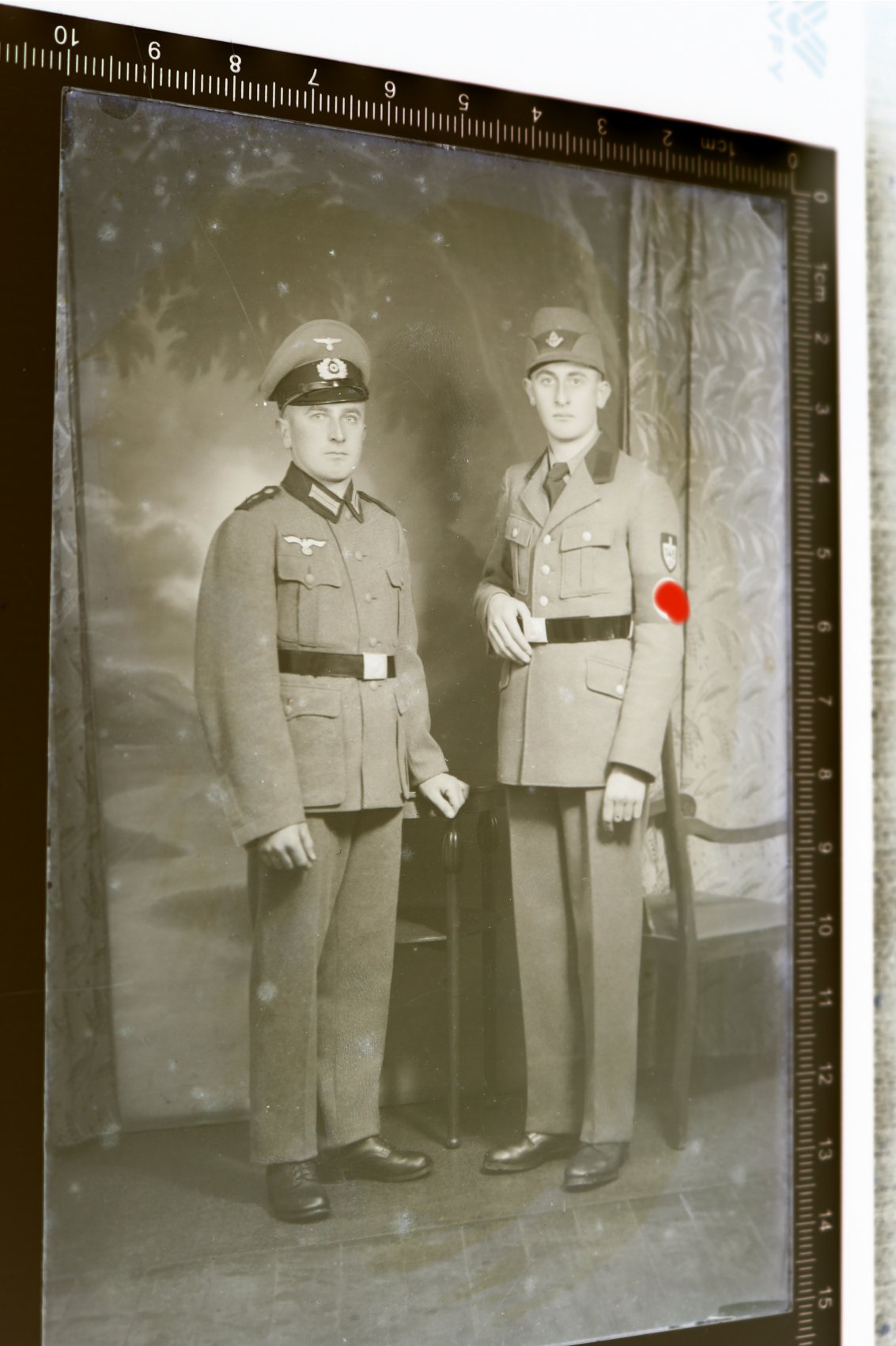 Mobile Preview: altes Glasnegativ - Portrait Soldat und R.A.D. Mann  Abteilung 145/10