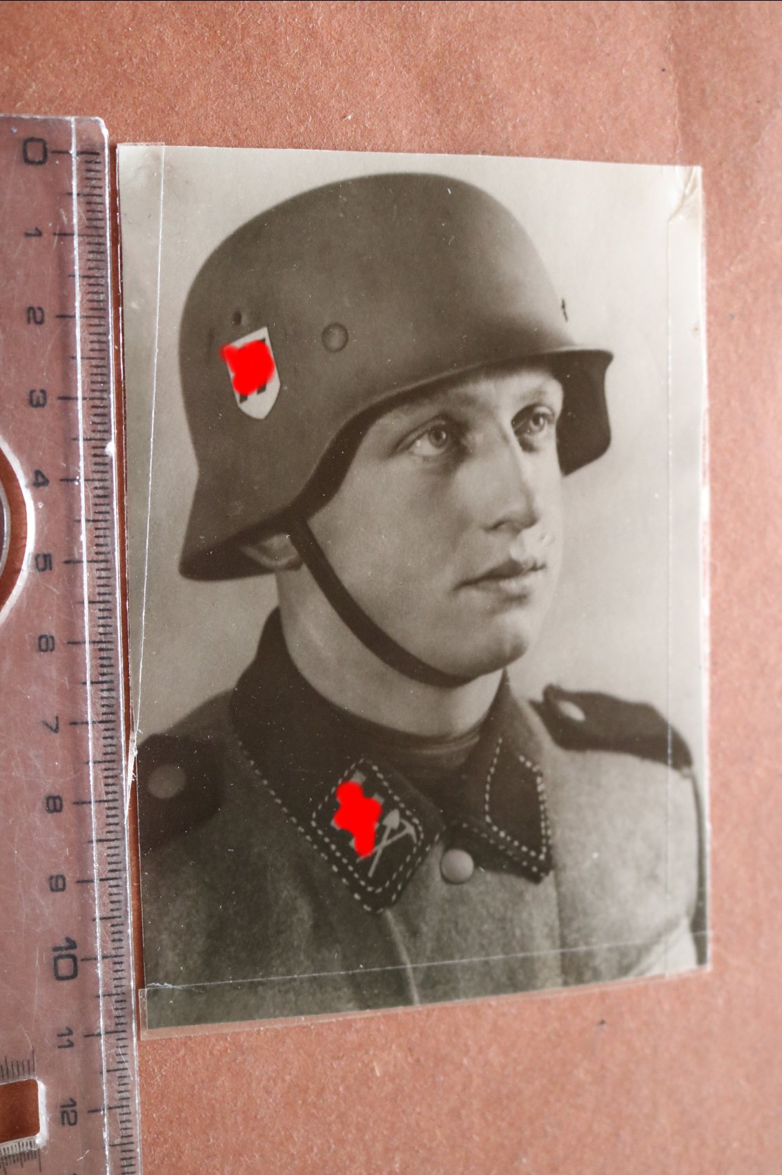 Portrait eines  Soldaten des SS-Pioniersturmbann mit Stahlhelm - neuzeitlicher Abzug