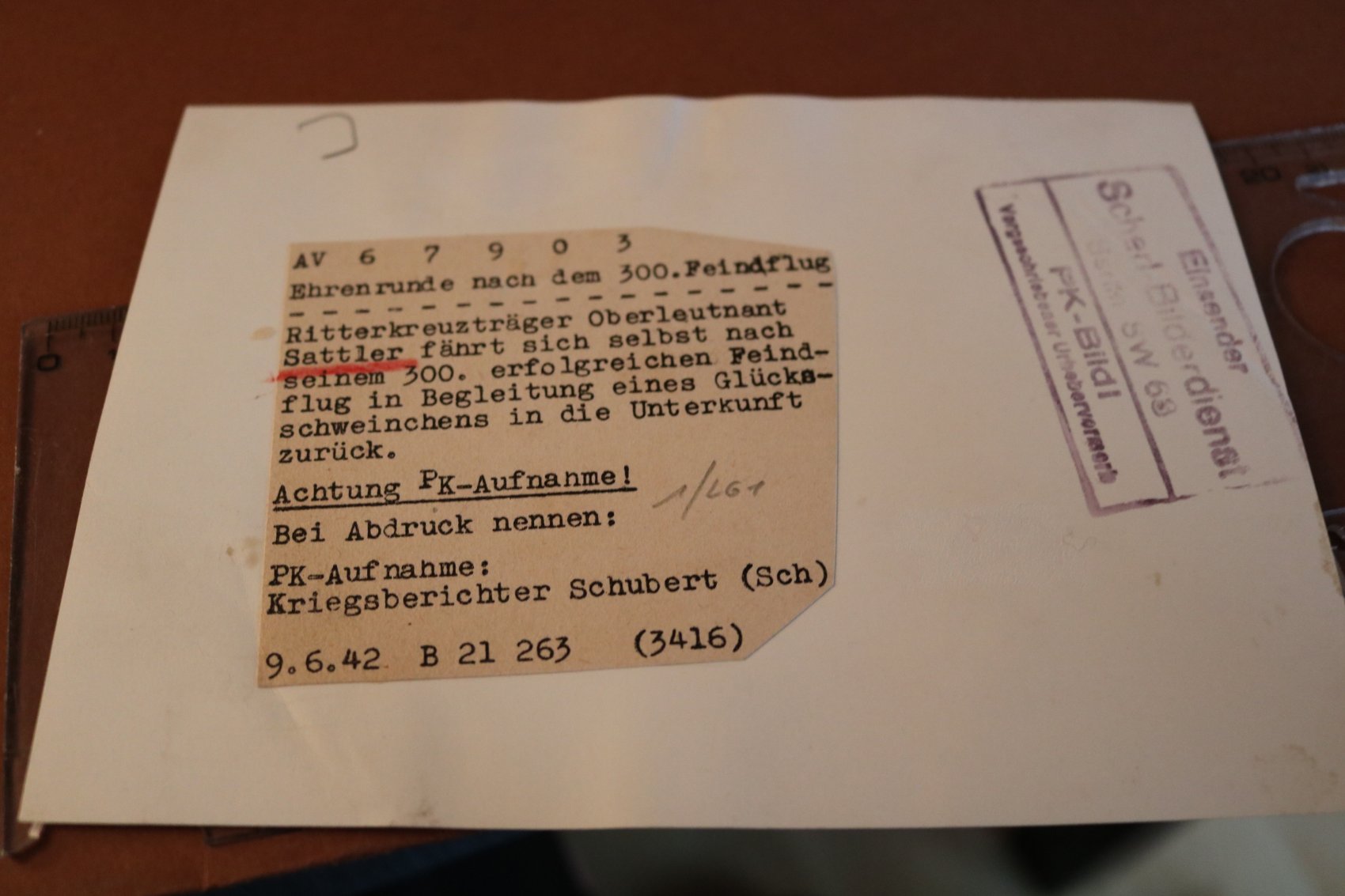 Mobile Preview: Pressefoto 17,5x12,5  Oberleutnant Sattler 300. Feindflug
