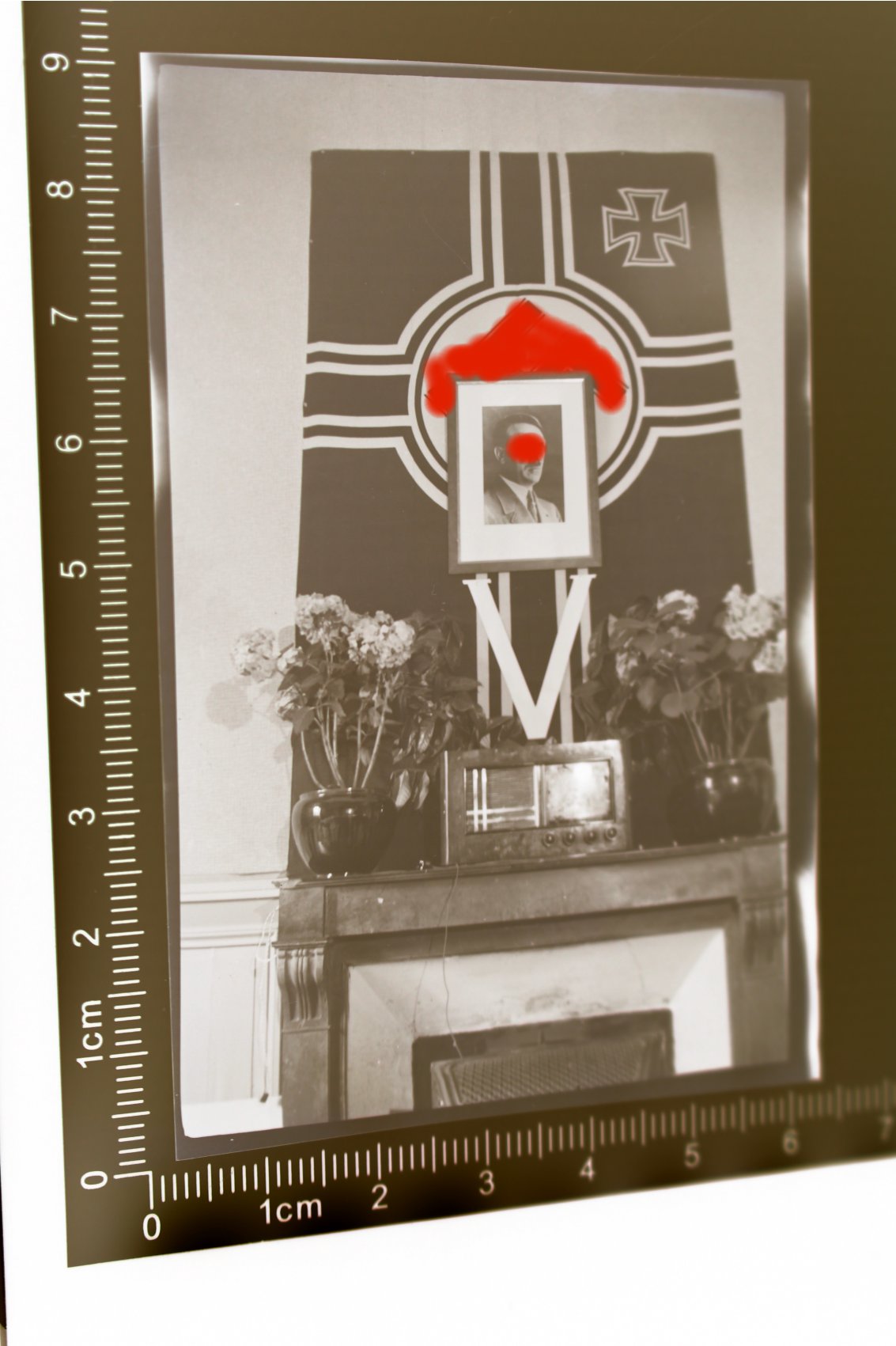 interessantes Negativ - Reichskriegsflagge und Foto A. Hitler