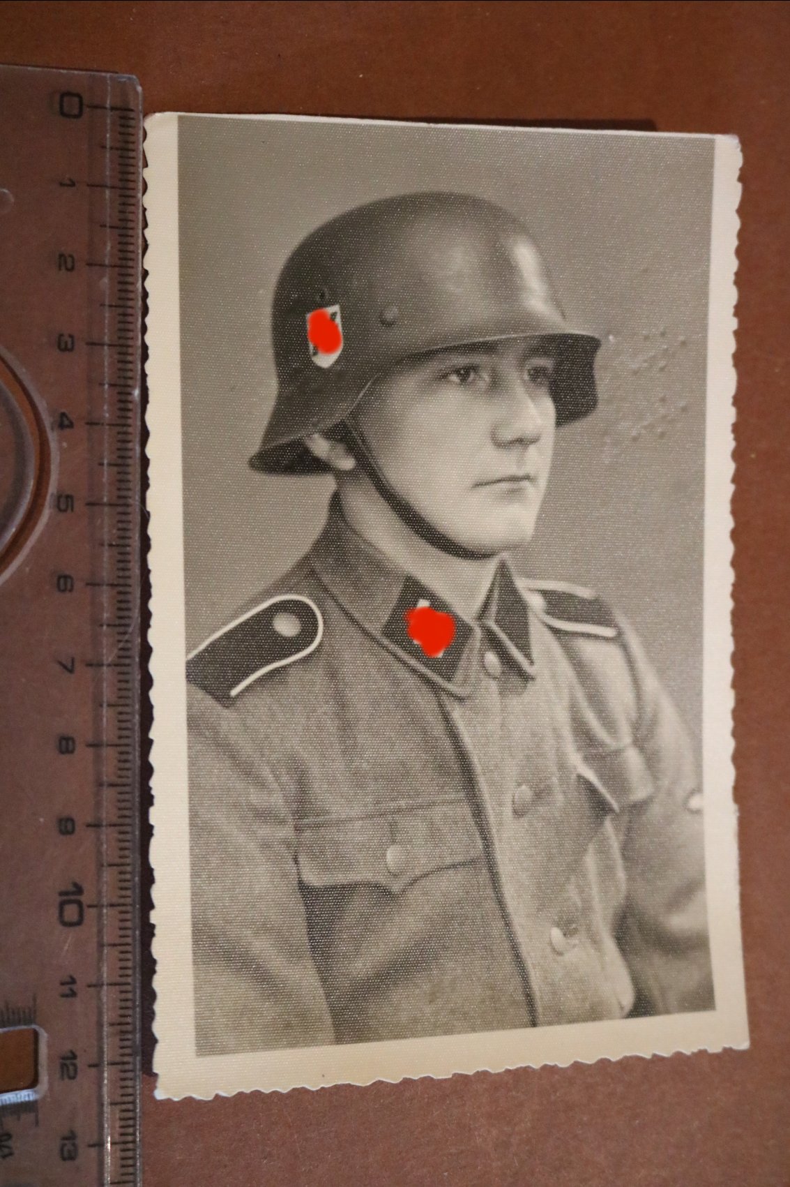 Mobile Preview: Topp Portraitfoto - Mann der Waffen SS mit Stahlhelm aus Brünn
