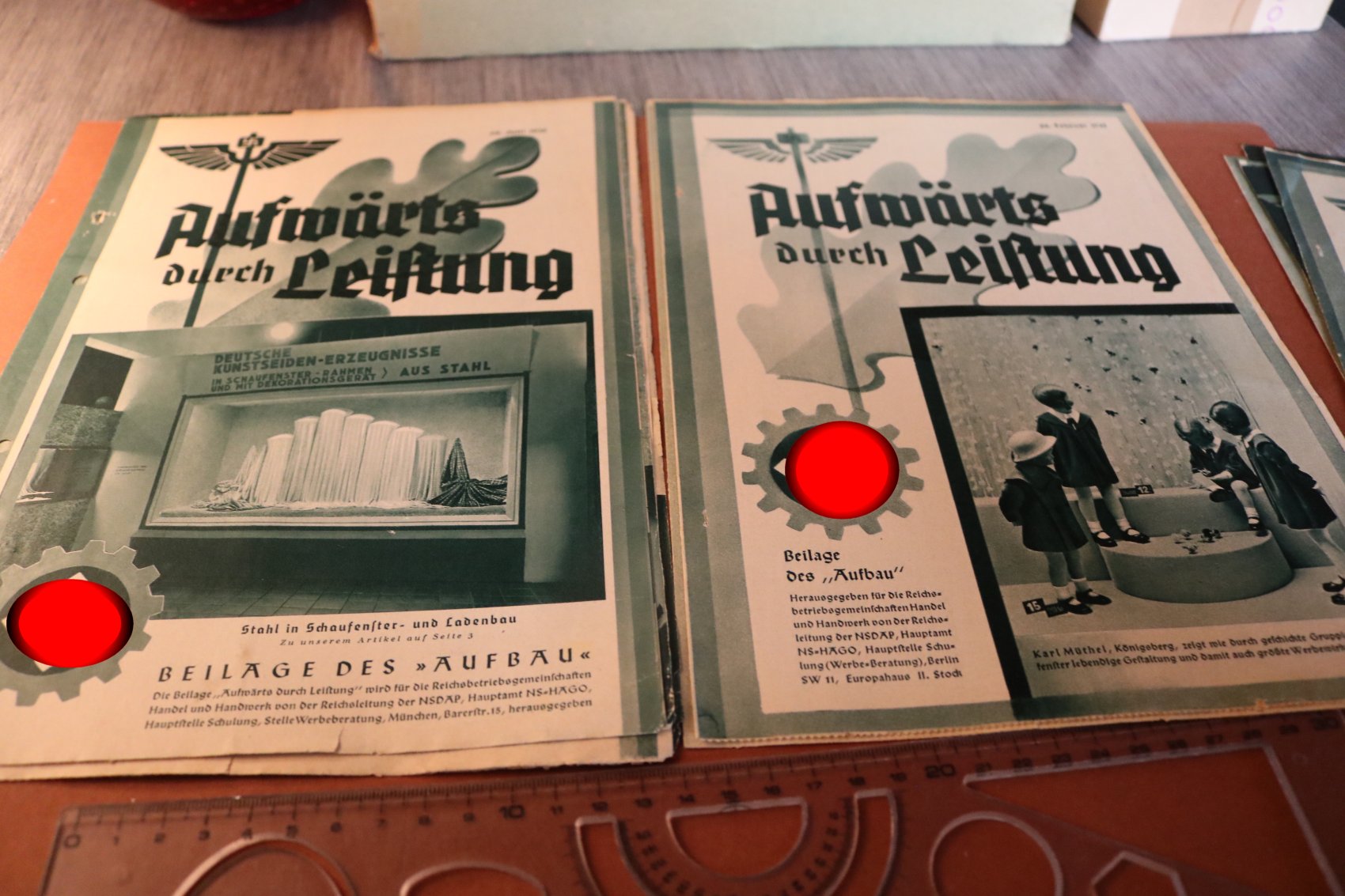 acht Zeitschriften-Beilagen des Aufbau - Aufwärts durch Leistung und Rat und Tat 1934/35