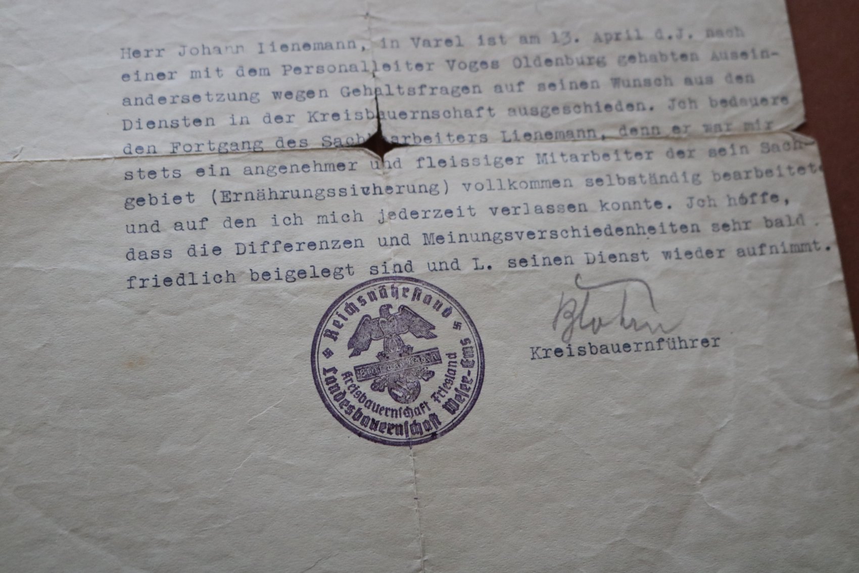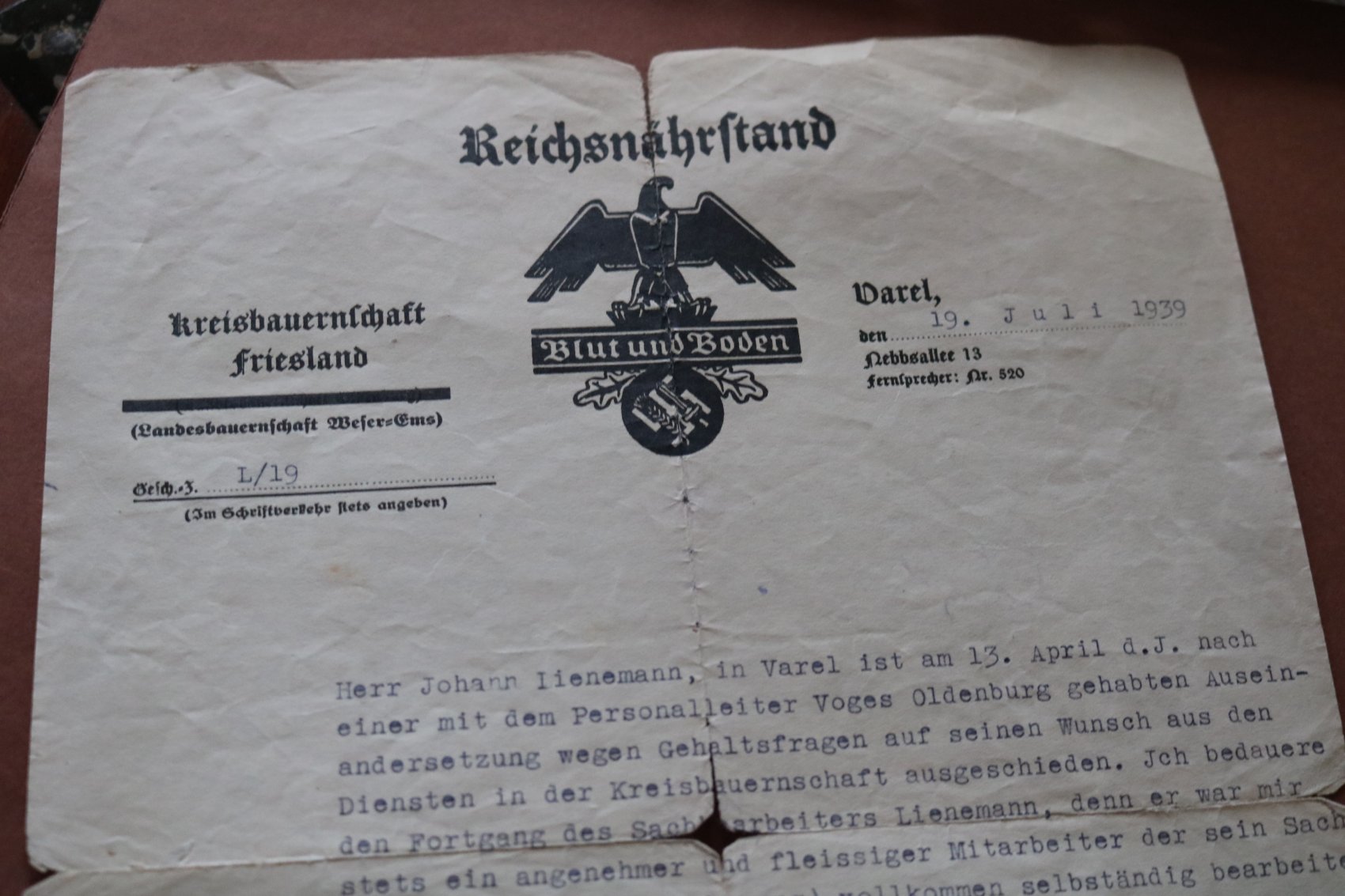 altes Arbeitszeugnis ?  Reichsnährstand - Blut und Boden - Varel 1939