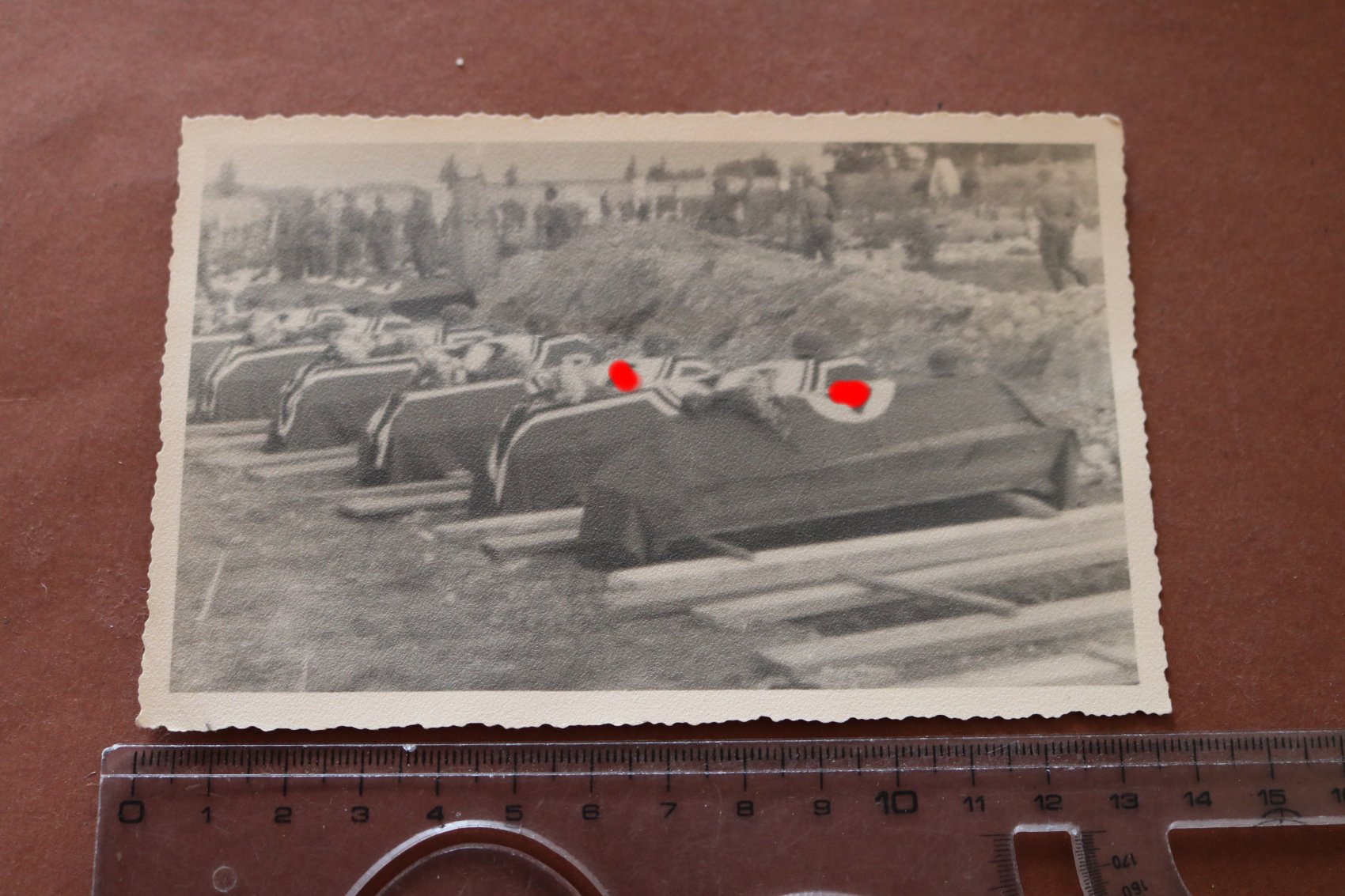 Preview: altes Foto - Beisetzung deutscher Kameraden - Särge mit Kriegsflaggen