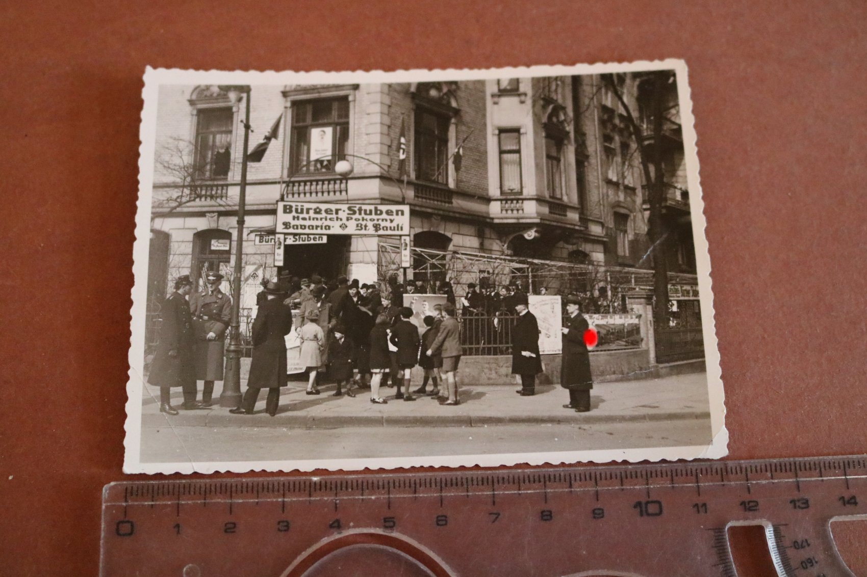 altes Foto - Gebäude Bürger-Stuben Heinrich Pokorny  - Wahllokal ?? SA Männer , Hitler Plakate