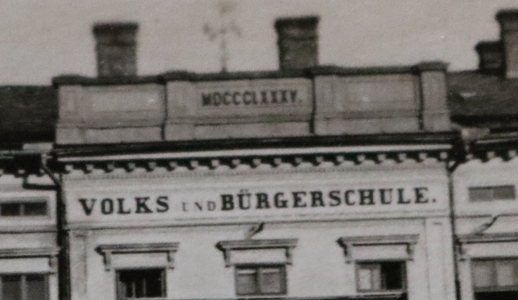 altes Foto - Wien ??? Volks.-und Bürgerschule - riesiges Adolf Hitler Plakat