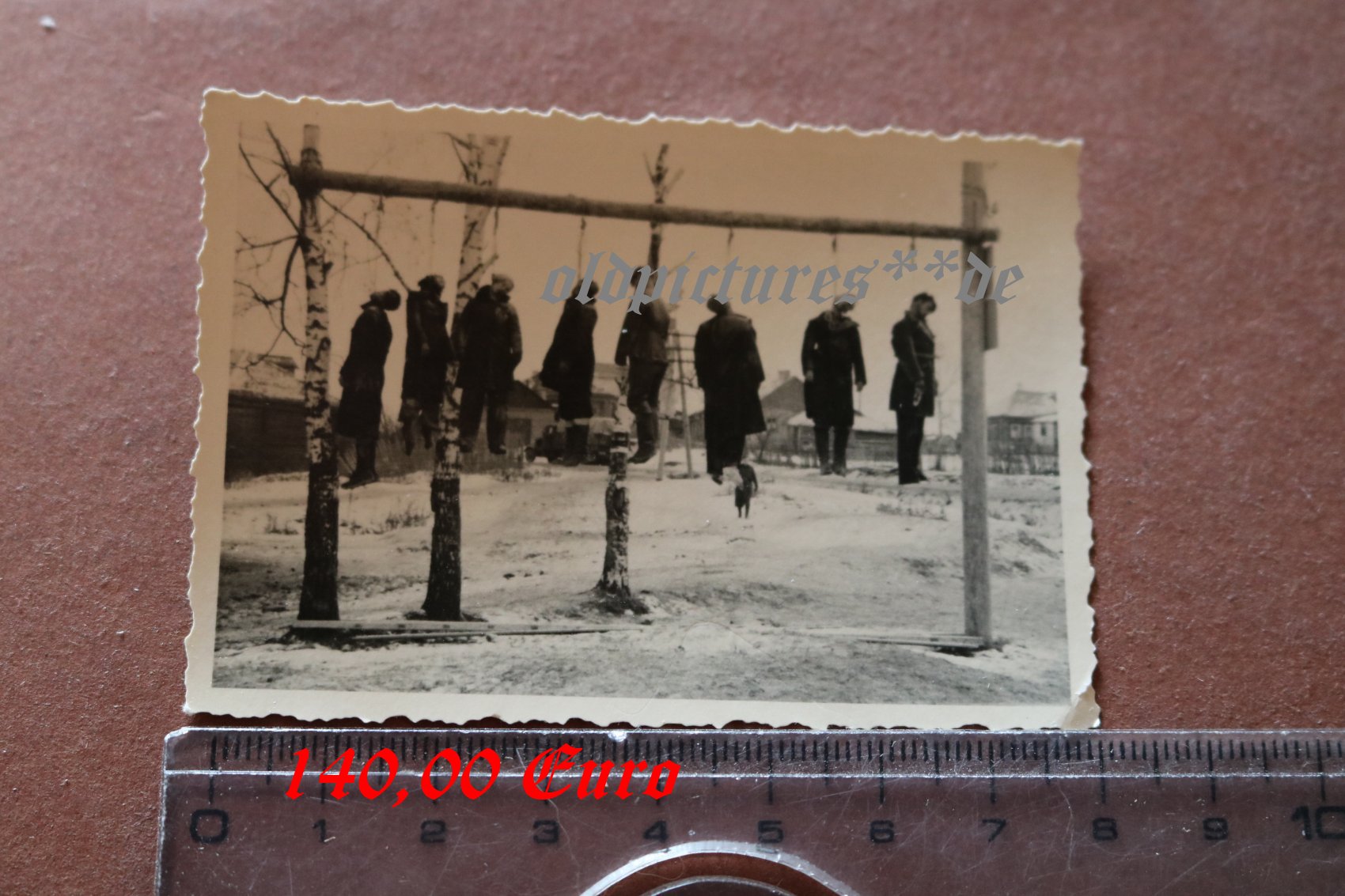 altes Foto - acht erhängte Partisanen - Russland ? Ort ? rückseitig beschrieben