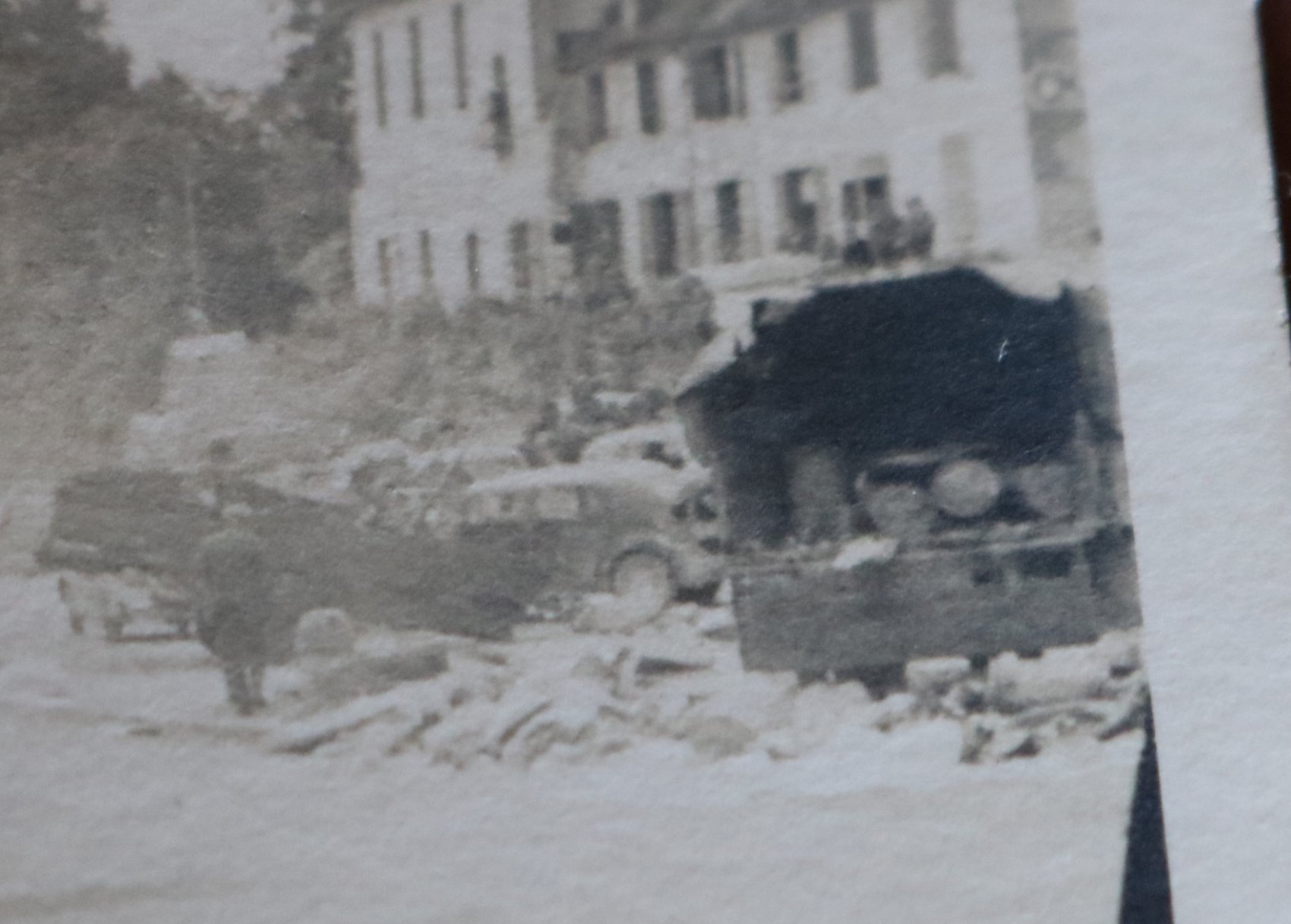 altes Foto - zerstörte Fahrzeuge , gefallene Soldaten nach Angriff - Ort ?? Westfeldzug