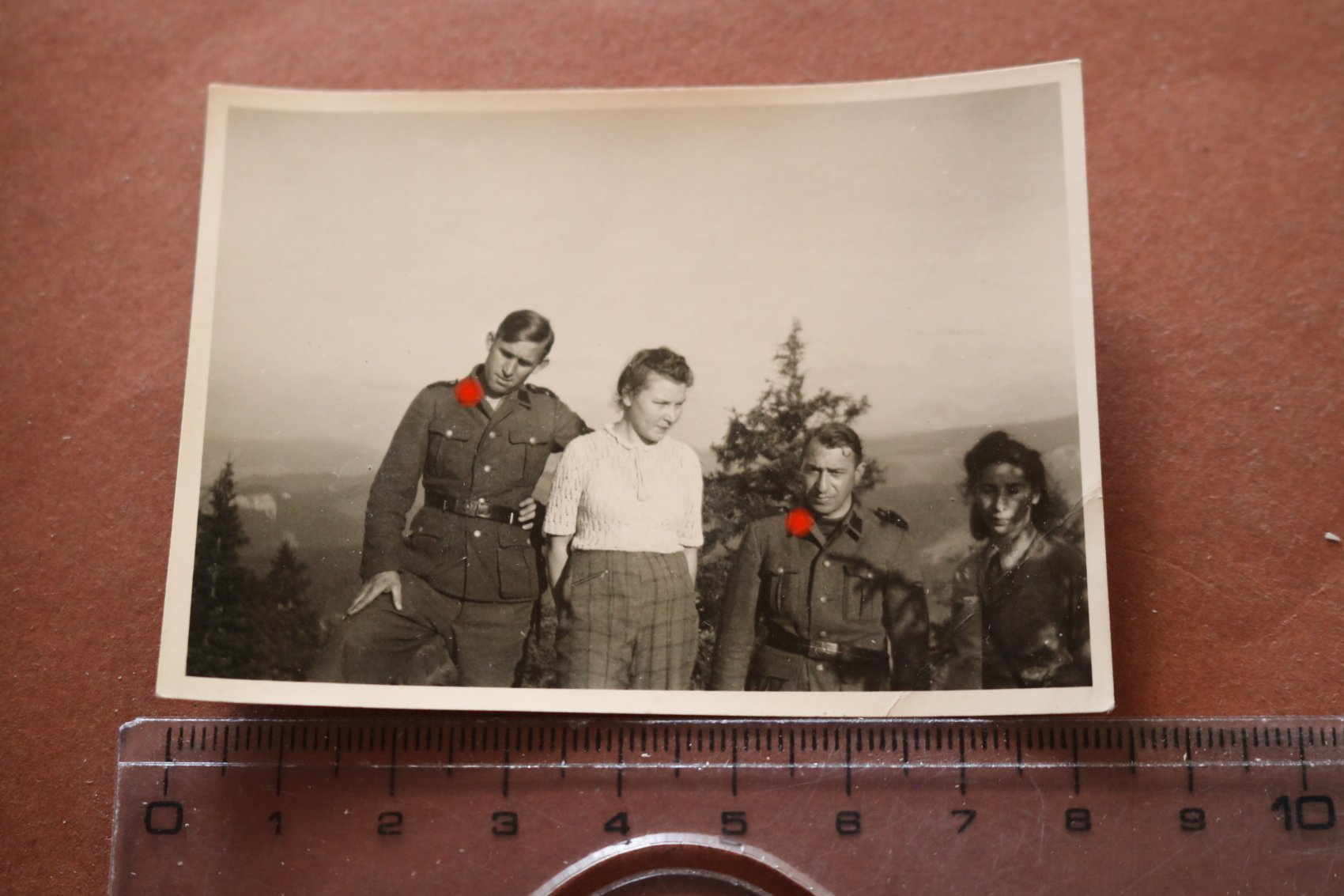 Preview: altes Foto - zwei Soldaten der Waffen-SS mit zwei hübschen Frauen
