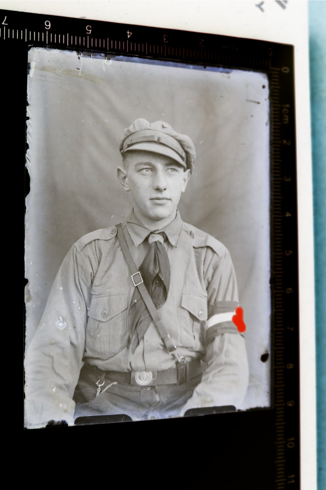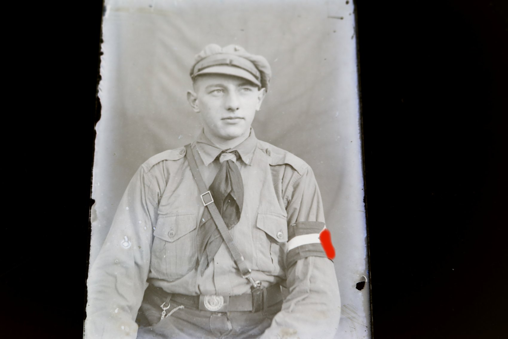 Mobile Preview: altes Glasnegativ - Hitlerjunge, Pimpf , mit Schirmmütze