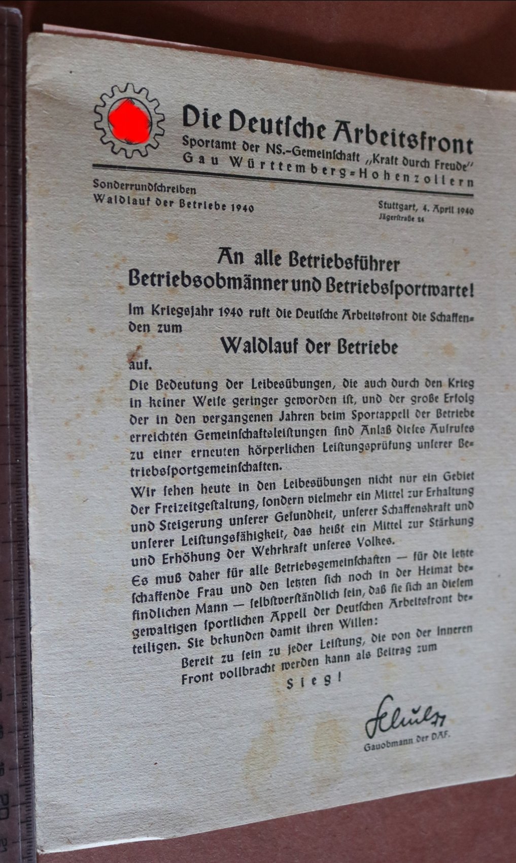 altes Heft - Betriebsführer - Waldlauf der Betriebe - Gau Württemberg-Hohenzollern 1940 Deutsche Arbeitsfront